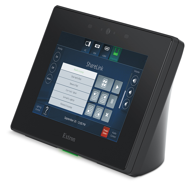 Extron TLP Pro 525T 是一款 5" 桌面型 TouchLink® Pro 触摸屏。与我们更新的 TouchLink Pro 型号一样,我们更先设计的这款 5" 桌面型触摸屏也具有许多增强特性。除了全新的高性能四核处理器和 8 倍高的内存外,它还采用带防刮擦和抗污迹的康宁®大猩猩玻璃® 的 800x480 高分辨率电容式触摸屏以及具有时尚、雅致后支脚的特色外壳。TLP Pro 525T 还具有方便的以太网供电 (PoE) 功能,可通过单根以太网电缆接收电源及进行通信。它非常适用于需要一款外观时尚并可完全定制界面的桌面型触摸屏的应用环境。